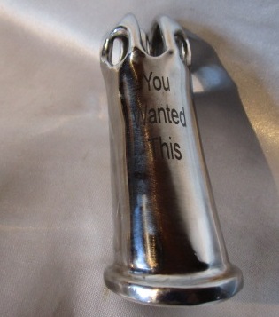 4- 3/4" overall length. Engraved with "You wanted this". Cost: $890.00